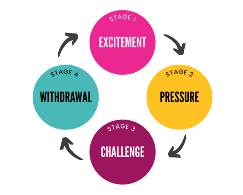 This is where the burnout cycle differs for people with ADHD. It doesn’t start with a slow erosion or steady depletion. It starts with a gush of enthusiasm that feels really, really good.